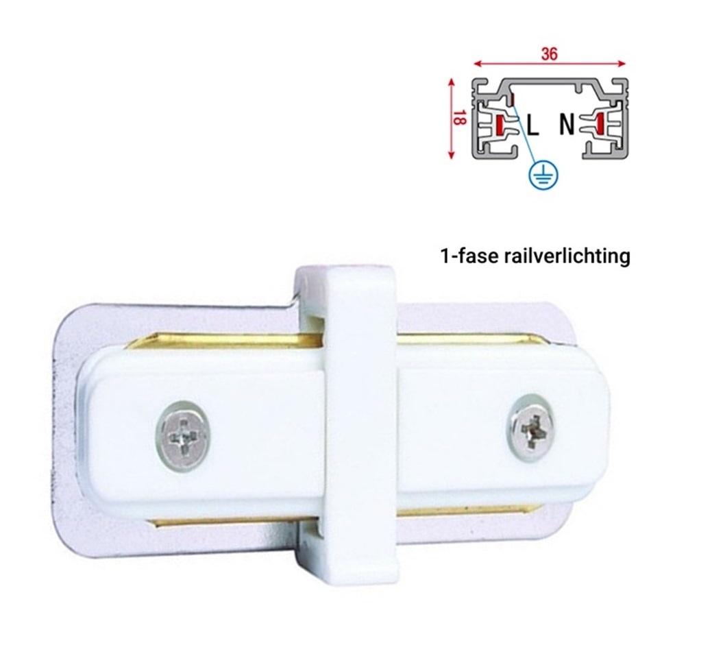 Met deze 1 Fase Rail koppelstuk recht is het mogelijk de 1 Fase rail 2 wire wit te verlengen in een gewenste lengte.