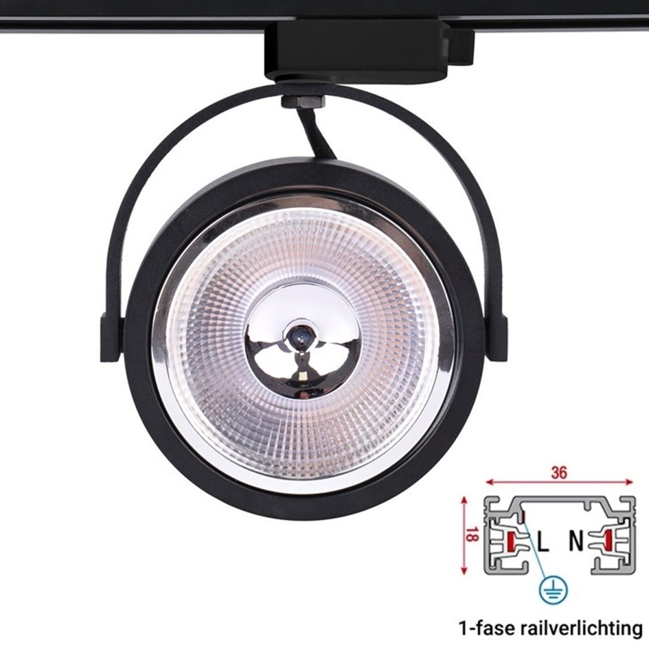 1 Fase Rail armatuur AR111 met GU10 Fitting, Zwartkleurige behuizing