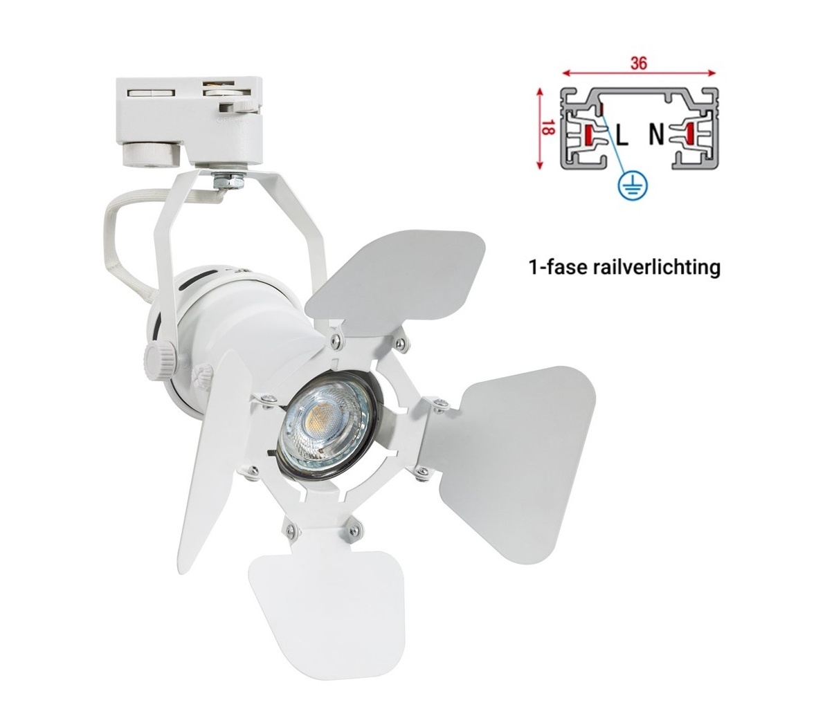 Deze 1 Fase Rail armatuur kan gebruikt worden in combinatie met 50mm GU10 Led spots. Hierdoor heb je een breed scala aan mogelijkheden. De 1 Fase rail spot is zeer geschikt voor gebruikt in restaurants, cafés, woonkamers etc.