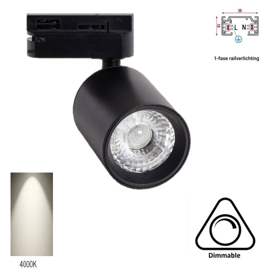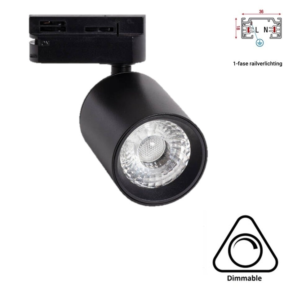 1 Fase Rail Spot Mal, 10w, 1000 Lumen, Dimbaar, Lichthoek:15 graden, Zwart, 2 Jaar garantie