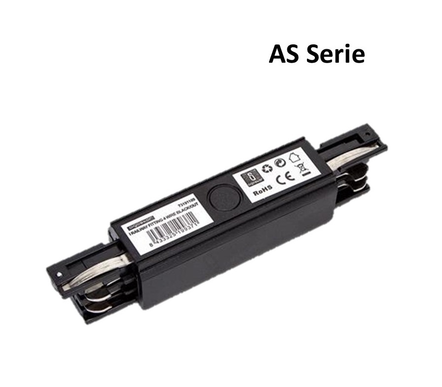 Met deze 3 Fase Rail Midden aansluitblok is het mogelijk de 3 Fase rail 4 wire zwart uit de AS Serie in het midden te voorzien van stroom. Aan beide kanten kan een Rail geplaatst worden. Ideaal wanneer een plafonddoos halverwege de rail hangt.