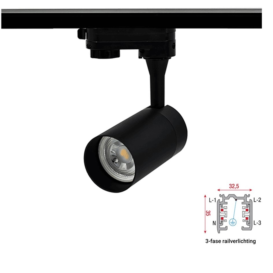 Een voordelige LED oplossing voor 3 Fase rail spot. Geschikt voor 50mm GU10 spot