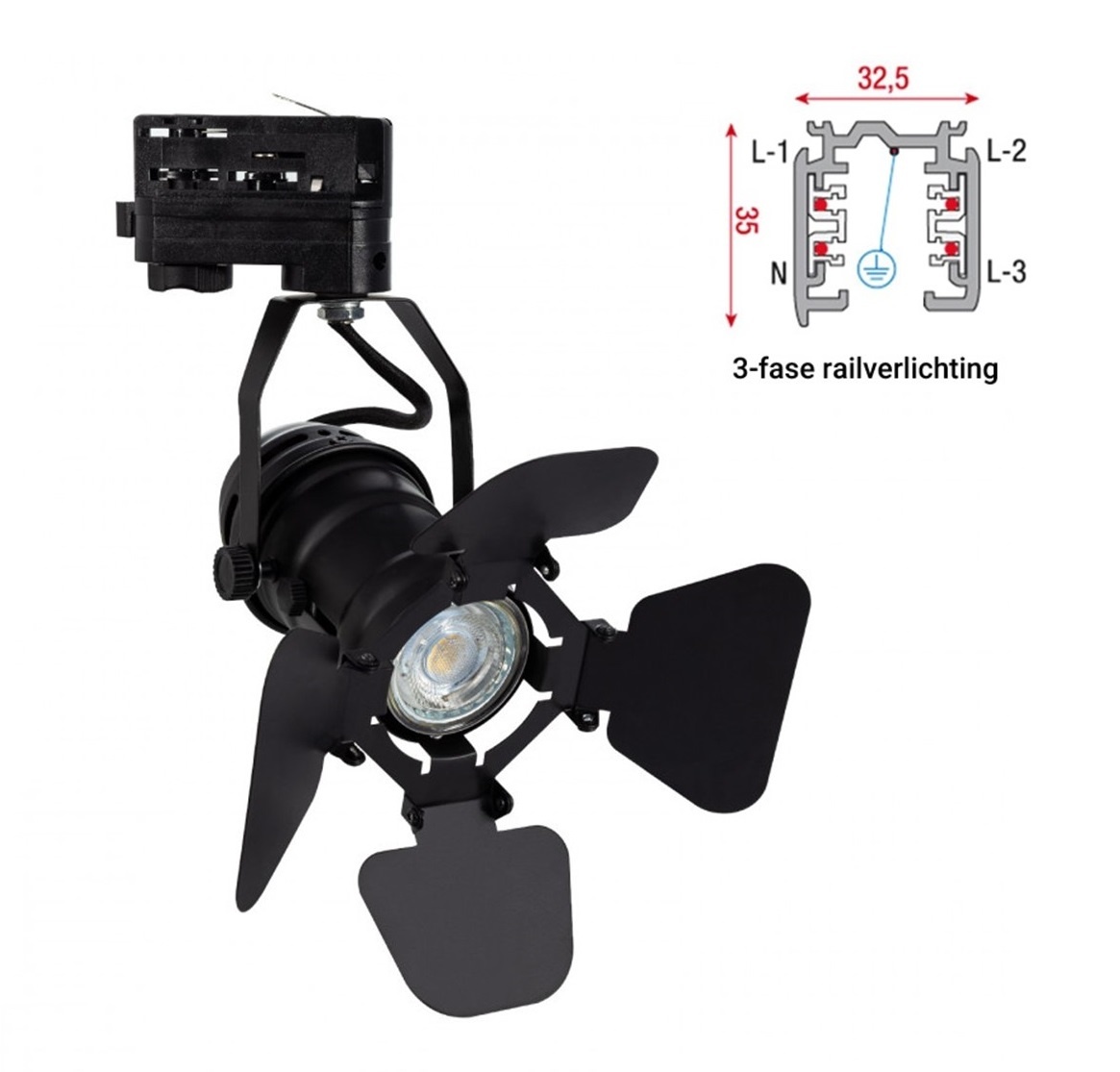 Deze 3 Fase Rail armatuur kan gebruikt worden in combinatie met 50mm GU10 Led spots. Hierdoor heb je een breed scala aan mogelijkheden. De 3 Fase rail spot is zeer geschikt voor gebruikt in restaurants, cafés, woonkamers etc.