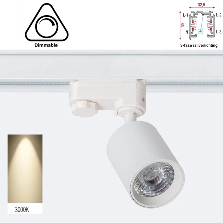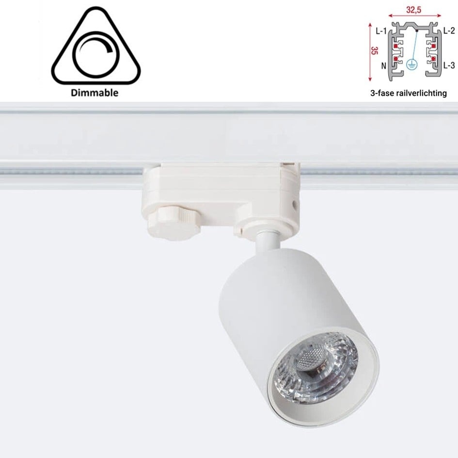 3 Fase Rail Spot Mal, 10w, 1000 Lumen, Dimbaar, Lichthoek:15 graden, Wit, 2 Jaar garantie