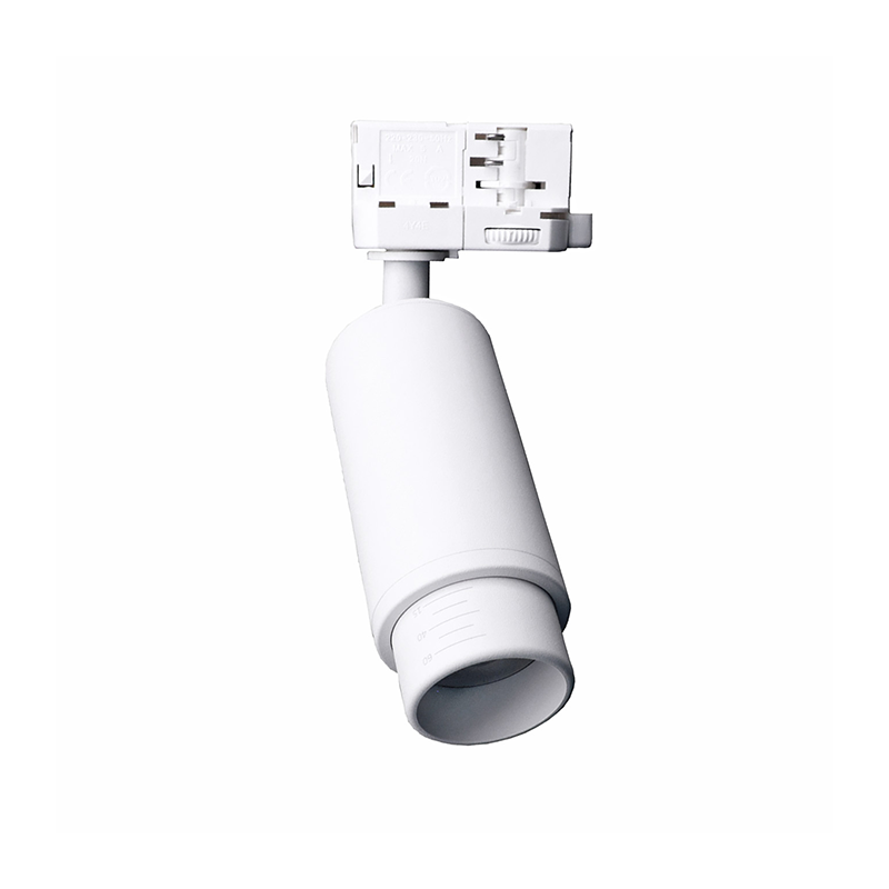 3 Fase Rail Spot met GU10 Fitting, Lange Koker met Verstelbare Lens 10°-50° , Witkleurige behuizing