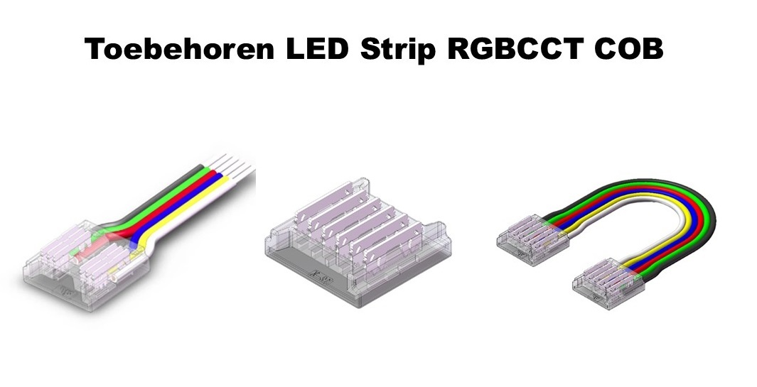 Let op! Deze connectoren zijn alleen te gebruiken op Led Strips COB RGBCCT met een breedte van 12mm. Geschikt voor 12v en 24v LED strip met IP20 en IP65 normering.