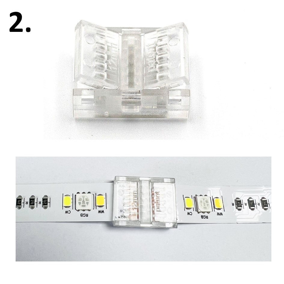 Deze connectoren zijn ideaal voor het doorverbinden, opnieuw bedraden of het verlengen van Led Strip RGBCCT met een breedte van 12mm. De connectoren zijn uitgerust met 6 kleine mesjes die dwars door de strip snijd en hierdoor een perfecte en vaste verbinding maakt.