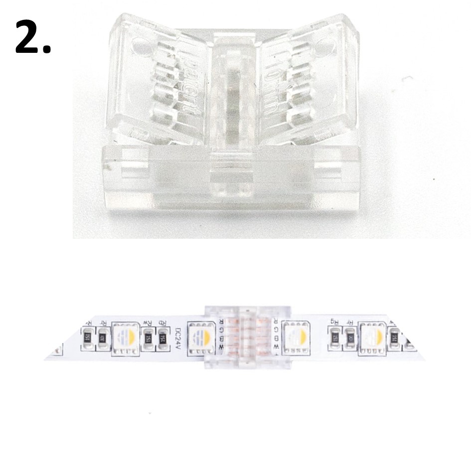 Deze connectoren zijn ideaal voor het doorverbinden, opnieuw bedraden of het verlengen van RGBW Led Strip met een breedte van 10mm. De connectoren zijn uitgerust met 5 kleine mesjes die dwars door de strip snijd en hierdoor een perfecte en vaste verbinding maakt.