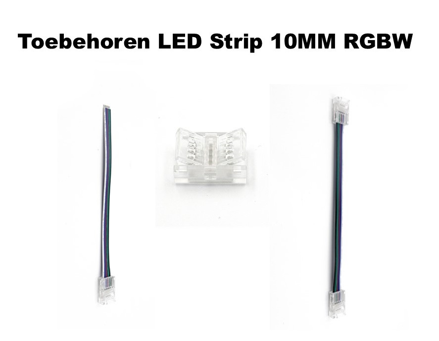 Let op! Deze connectoren zijn alleen te gebruiken op RGBW Led Strips met een breedte van 10mm. Geschikt voor 12v en 24v LED strip met IP20 en IP65 normering.
