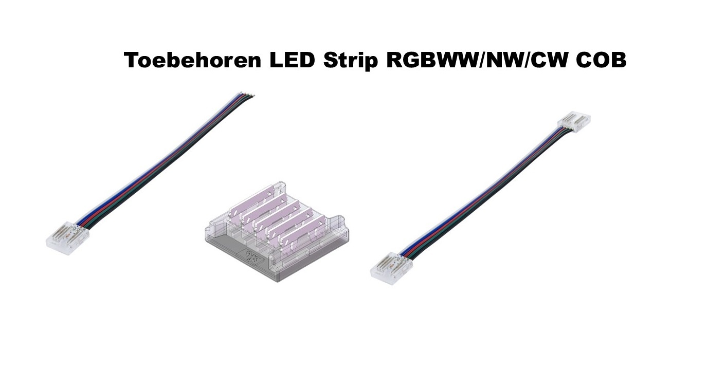 Let op! Deze connectoren zijn alleen te gebruiken op RGBW COB Led Strips met een breedte van 12mm. Geschikt voor 12v en 24v LED strip met IP20 en IP65 normering.