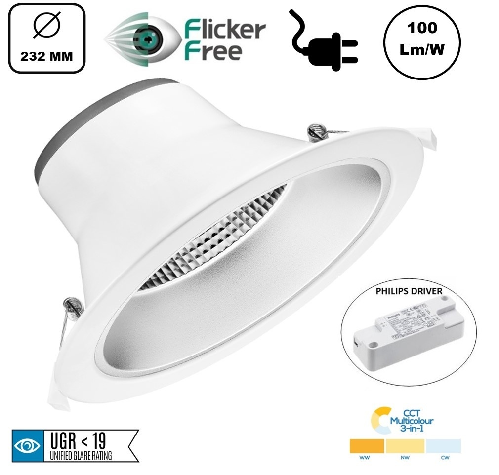 Deze hoogwaardige kwaliteit Reflector LED Downlighter is instelbaar in 3 verschillende lichtkleuren: