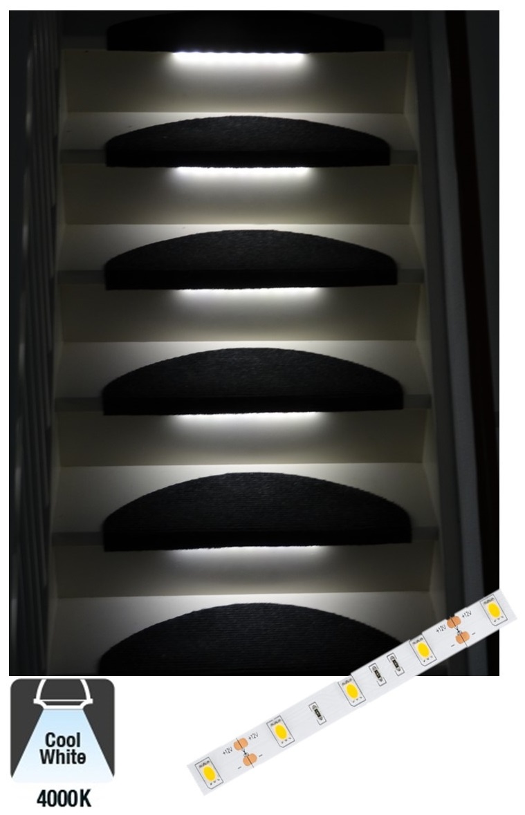 Deze set bestaat uit LED strip verlichting op lengte gemaakt voor toepassing onder de traptreden. Zet je trap in het licht en voorzie elke traptreden van een mooi lichtstrip. Of plaats om de traptreden een strip om het iets rustiger effect te krijgen.