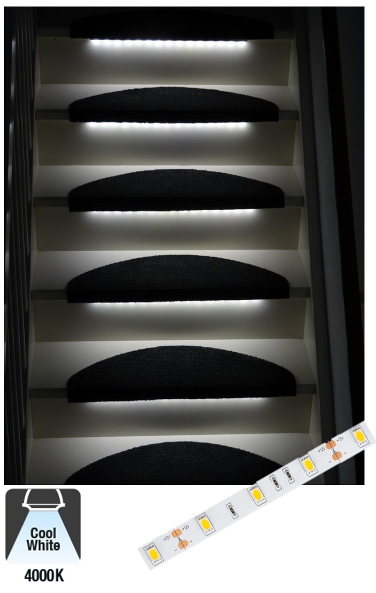 Deze set bestaat uit LED strip verlichting op lengte gemaakt voor toepassing onder de traptreden. Zet je trap in het licht en voorzie elke traptreden van een mooi lichtstrip. Of plaats om de traptreden een strip om het iets rustiger effect te krijgen.