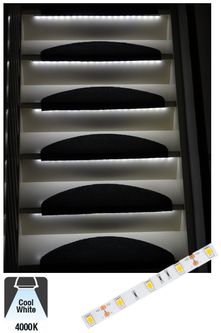 Deze set bestaat uit LED strip verlichting op lengte gemaakt voor toepassing onder de traptreden. Zet je trap in het licht en voorzie elke traptreden van een mooi lichtstrip. Of plaats om de traptreden een strip om het iets rustiger effect te krijgen.