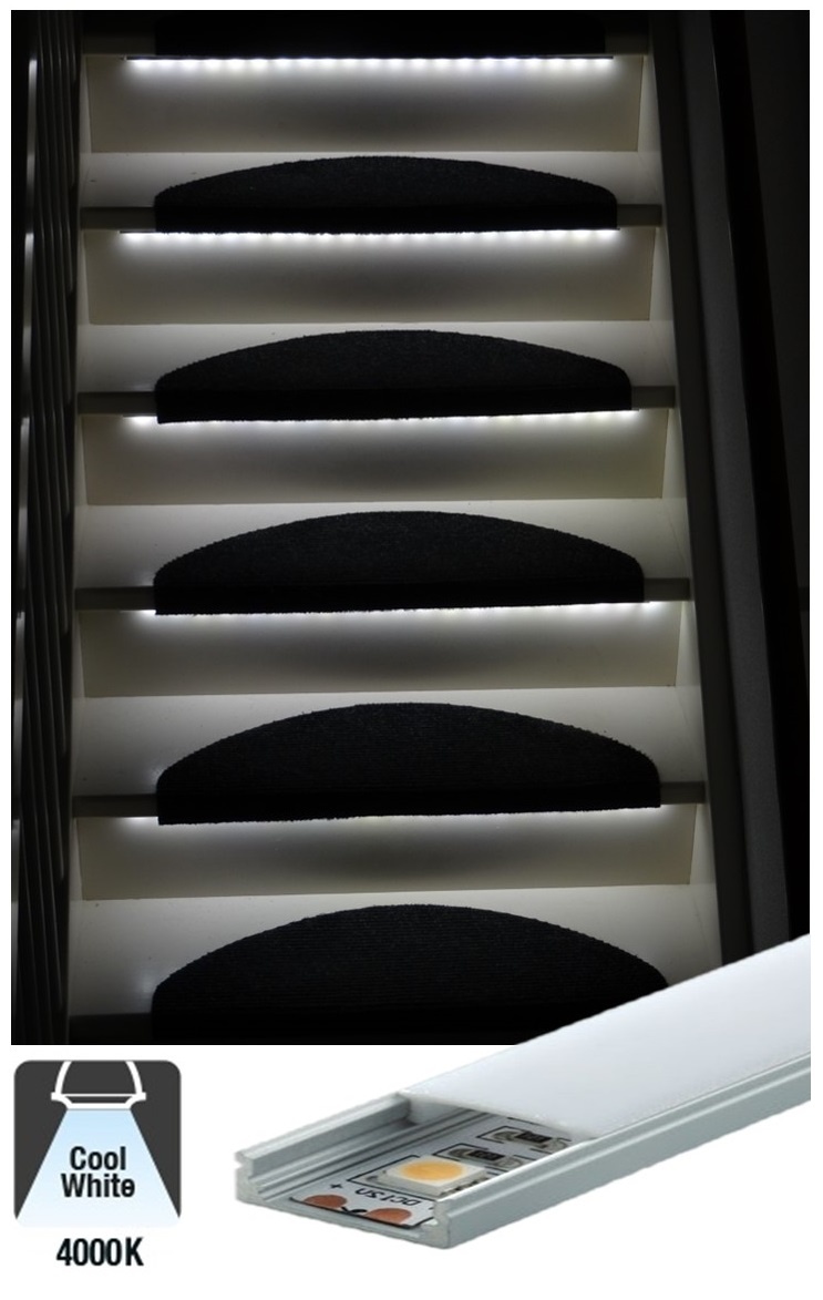Deze set bestaat uit LED strip verlichting op lengte gemaakt voor toepassing onder de traptreden. Zet je trap in het licht en voorzie elke traptreden van een mooi lichtstrip. Of plaats om de traptreden een strip om het iets rustiger effect te krijgen. Elke LED strip is voorzien van een Aluminium profiel op lengte van 71 cm. De profiel zorgt voor een nette afwerking, bescherming en koeling voor de LED strip.