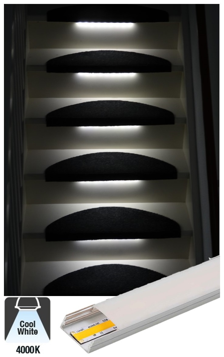 Deze set bestaat uit LED strip verlichting op lengte gemaakt voor toepassing onder de traptreden. Zet je trap in het licht en voorzie elke traptreden van een mooi lichtstrip. Of plaats om de traptreden een strip om het iets rustiger effect te krijgen. Elke LED strip is voorzien van een Aluminium profiel op lengte van 21 cm. De profiel zorgt voor een nette afwerking, bescherming en koeling voor de LED strip.
