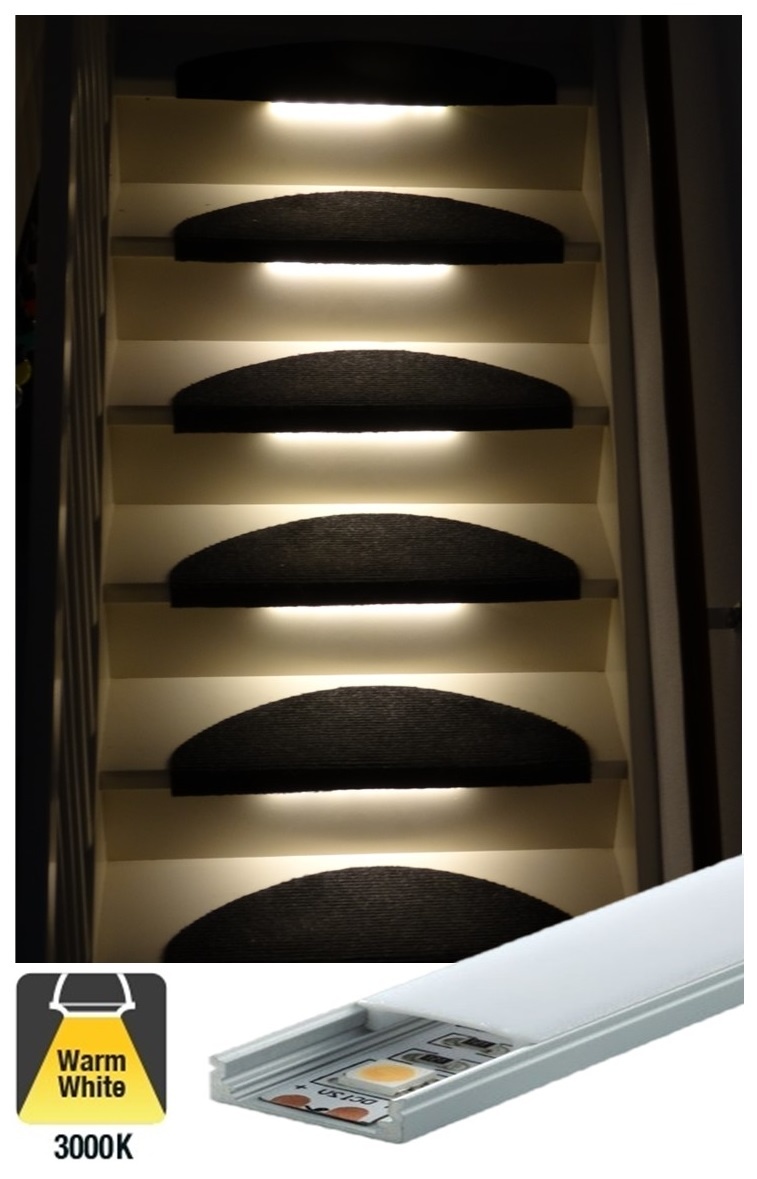 Deze set bestaat uit LED strip verlichting op lengte gemaakt voor toepassing onder de traptreden. Zet je trap in het licht en voorzie elke traptreden van een mooi lichtstrip. Of plaats om de traptreden een strip om het iets rustiger effect te krijgen. Elke LED strip is voorzien van een Aluminium profiel op lengte van 21 cm. De profiel zorgt voor een nette afwerking, bescherming en koeling voor de LED strip.