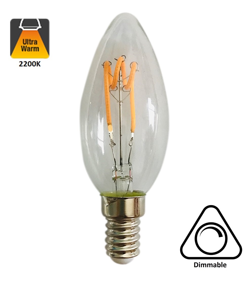 De E14 4w filament led lamp 2200K DImbaar is zeer goed toepasbaar in kroonluchters of te gebruiken in decoratieve lampen armaturen.