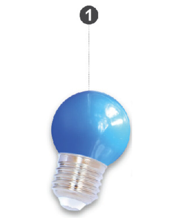 De 1 watt lamp is in principe voldoende voor de meeste situaties en vergelijkbaar met een 15W blauwe gloeilamp. Bij blauw gekleurde gloeilampen wordt namelijk veel licht tegengehouden doordat de kap blauw is gespoten met verf om zo het licht blauw te maken (de lichtbron zelf geeft wit licht bij een gloeilamp). Al onze blauwe LED lampen beschikken over blauwe LEDs die blauw licht geven. Zodoende gaat er minder licht verloren in de kap en komt de kleur blauw veel mooier tot zijn recht.