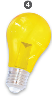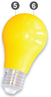 - Is een grotere A60 bollamp van 1 watt met matte gele kap