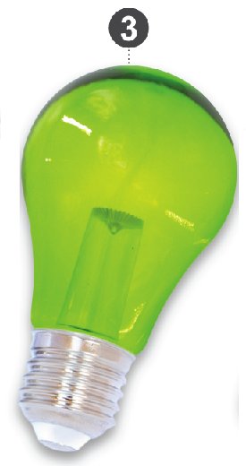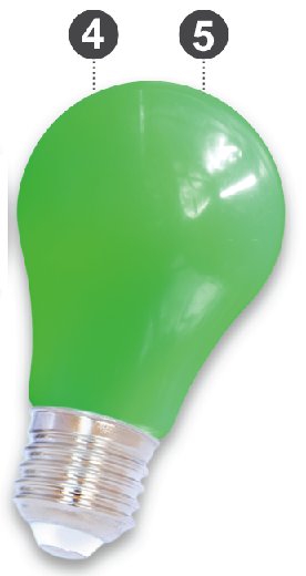 - Is een grotere A60 bollamp van 1 watt met transparante groene kap en lens