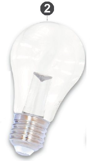- Is een grotere A60 bollamp van 1 watt met transparante kap en lens