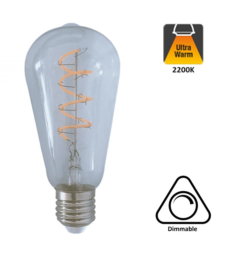 Zeer unieke decoratieve vintage E27 4w led lamp 2200K dimbaar. Dankzij de lage wattage en lumen van is de dimbare E27 ST64 Led lamp zeer goed om in het zicht te gebruiken. De lage 180 lumen zorgt ervoor dat de ST64 E27 4w filament led lamp geen hinderlijke belichting afgeeft.
