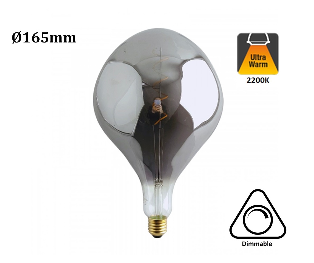 De warme 2300k flame lichtkleur zorgt voor een zeer sfeervolle kaarsachtige belichting. Het smoked kleurige glas met Filament LED geeft de Big Dimbaar E27 6w filament led lamp 2200K zijn vintage look.