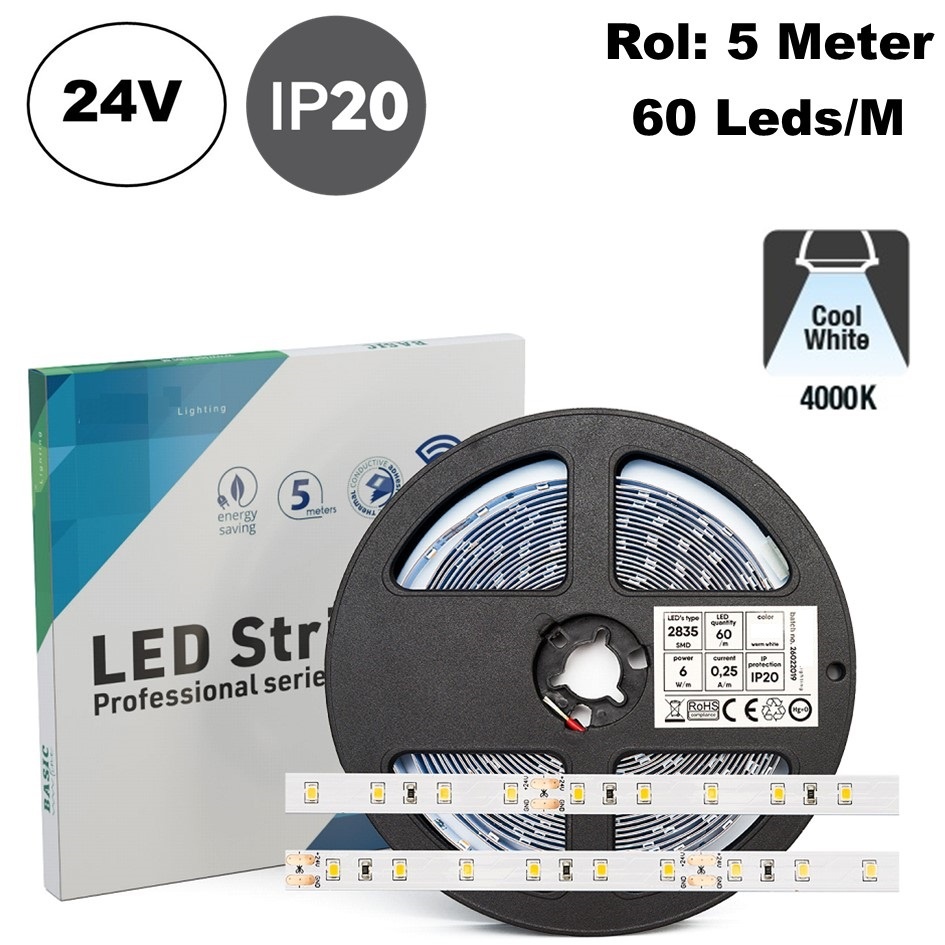 Deze 4000K Neutraal witte Led Strip met krachtige SMD 2835SMD heeft 60 leds per meter. Met een zeer goede lichtopbrengst van 650 lumen per meter zeer geschikt als sfeermaker in elke ruimte. Deze led strip heeft een IP20 normering wat betekent dat deze voor binnenshuis gebruik kan worden.