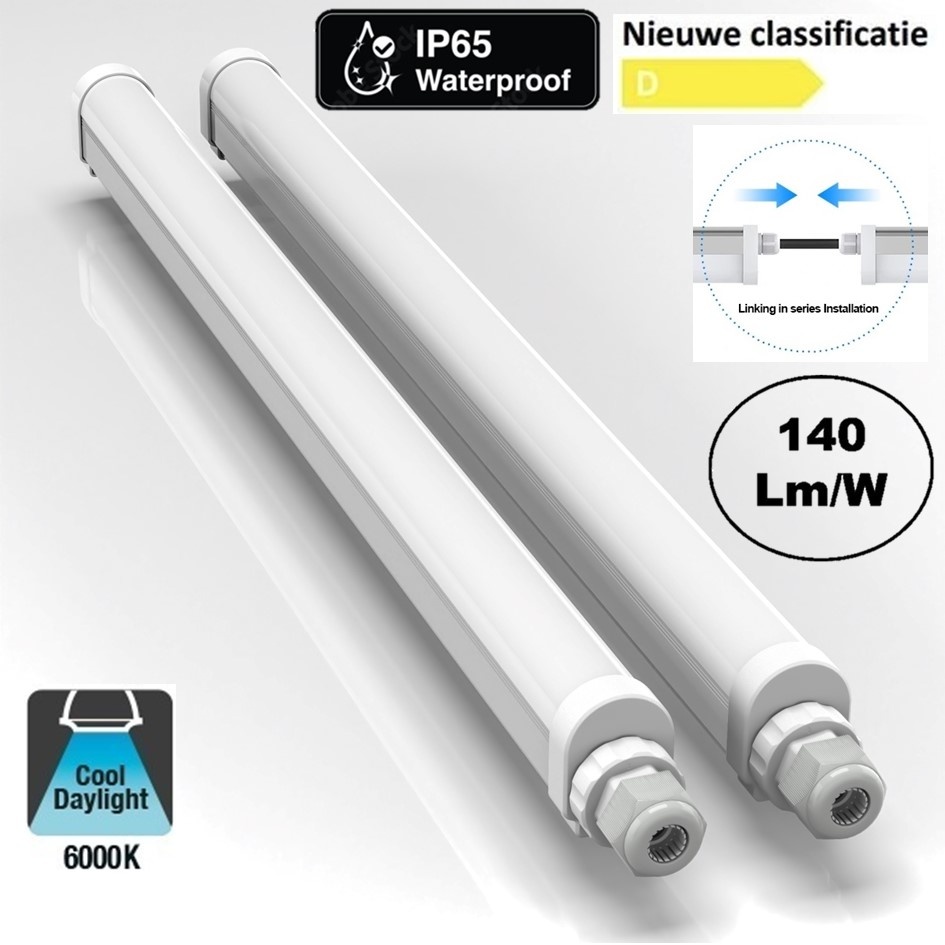 Dankzij de 140 Lumen per watt voldoet de LED Tri Proof aan de nieuwe Energieklasse D geldig vanaf 2021.