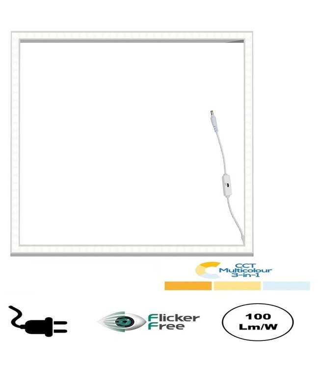 Het Frame Led Paneel 60x60cm kan ingesteld worden in 3 verschillende lichtkleuren. Het LED paneel heeft een verbruik van slechts 32w met 3200 Lumen. Het back-lit paneel is voorzien van een 3 kleuren switch. Dat houdt in dat het paneel ingesteld kan worden in 3000K (warm wit), 4000K (Neutraal wit) en 5000K (Daglicht wit). Door het instellen van de 3 verschillende lichtkleuren, een 3 in 1 LED Paneel, kan je elke ruimte naar wens belichten.