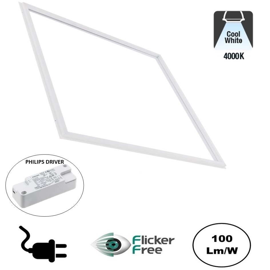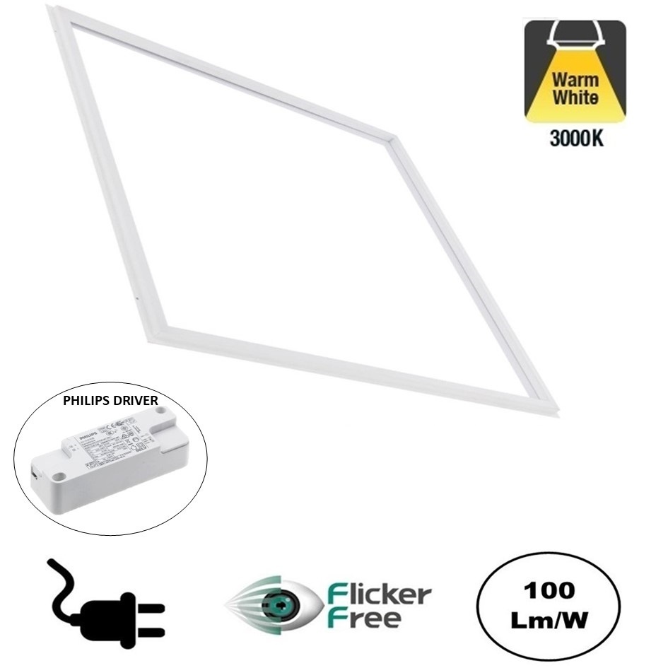 Het Frame Led Paneel 60x60cm is leverbaar in 3000K (warm wit), 4000K (Neutraal wit) en 6000K (Daglicht wit). Het LED paneel heeft een verbruik van slechts 32w met 3200 Lumen. Wordt geleverd met betrouwbare Philips LED Driver.