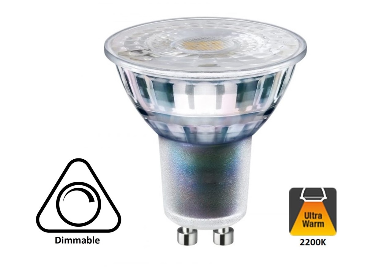Hoogwaardige kwaliteit GU10 led spot dimbaar leverbaar in mooie 2200K Flame lichtkleur. De krachtige SMD Led met maar liefst 450 lumen zorgt voor een zeer goede belichting. De SMD Led chip in de dimbare GU10 5,5w Led spot maakt gebruik van de zelfde techniek als die van een COB led chip. Het licht van de GU10 5,5w Led Spot dimbaar komt uit één centraal punt, wat zorgt voor een egale belichting.