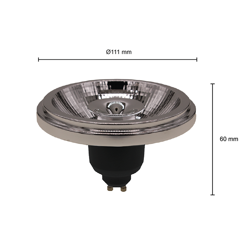Deze zeer goede kwaliteit GU10 AR111 Led Spot dimbaar is ontworpen als retrofit oplossing voor de bestaande halogeen ar111 spot. De unieke spiegelreflectoren zorgen voor een uitstekende lichtverspreiding. De indirecte belichting met lens zorgt voor een minimale verblinding van het licht. De GU10 AR111 Led spot dimbaar heeft een zeer goed ontworpen koeling wat de levensduur en betrouwbaarheid van de GU10 AR111 12w Led spot 4000K bevordert. De zeer krachtige COB led Chip zorgt voor een beter lichteffect en hogere lichtopbrengst van maar liefst 960 Lumen.