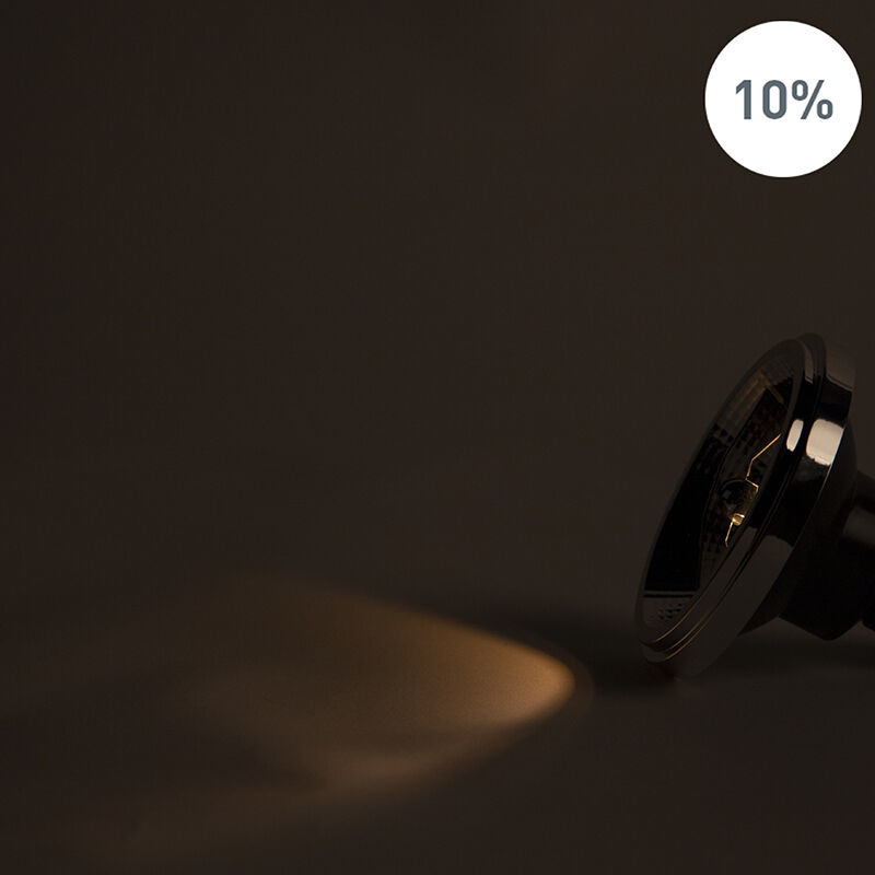 Dankzij de Dim To Warm eigenschap heb je bij 0% dimstand een lichtkleur van 3000K. Naarmate je de spot dimt wordt de lichtkleur steeds warmer tot maximaal 2000K Flame lichtkleur (80-90% dimstand)