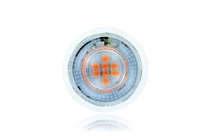 De roodkleurige leds geven de GU10 LED spot zijn roodkleurige belichting met een lichtopbrengst van 130 lumen. De stralingshoek bedraagt 40 graden.