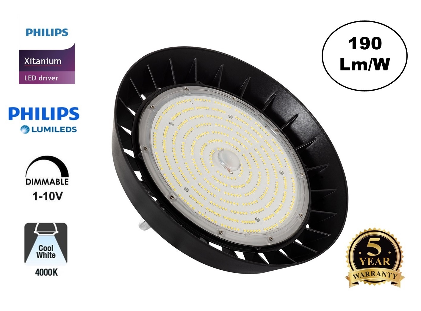 De Philips 2835 SMD LumiLEDS met zeer hoge 190 Lumen per watt verhouding, met in totaal 28500 lumen, zorgt ervoor dat er niet wordt ingeleverd op de huidige belichting. De LED Ufo High Bay 150w evenaart minimaal de belichting van een huidige 400w kwikdamplamp, maar door de hoge Lumen uitstoot en direct belichting naar beneden zal de lichtopbrengst zelf hoger zijn dan die van een 400w kwikdamplamp. Zo kan de besparing tot wel 60% oplopen zonder in te leveren op belichting.