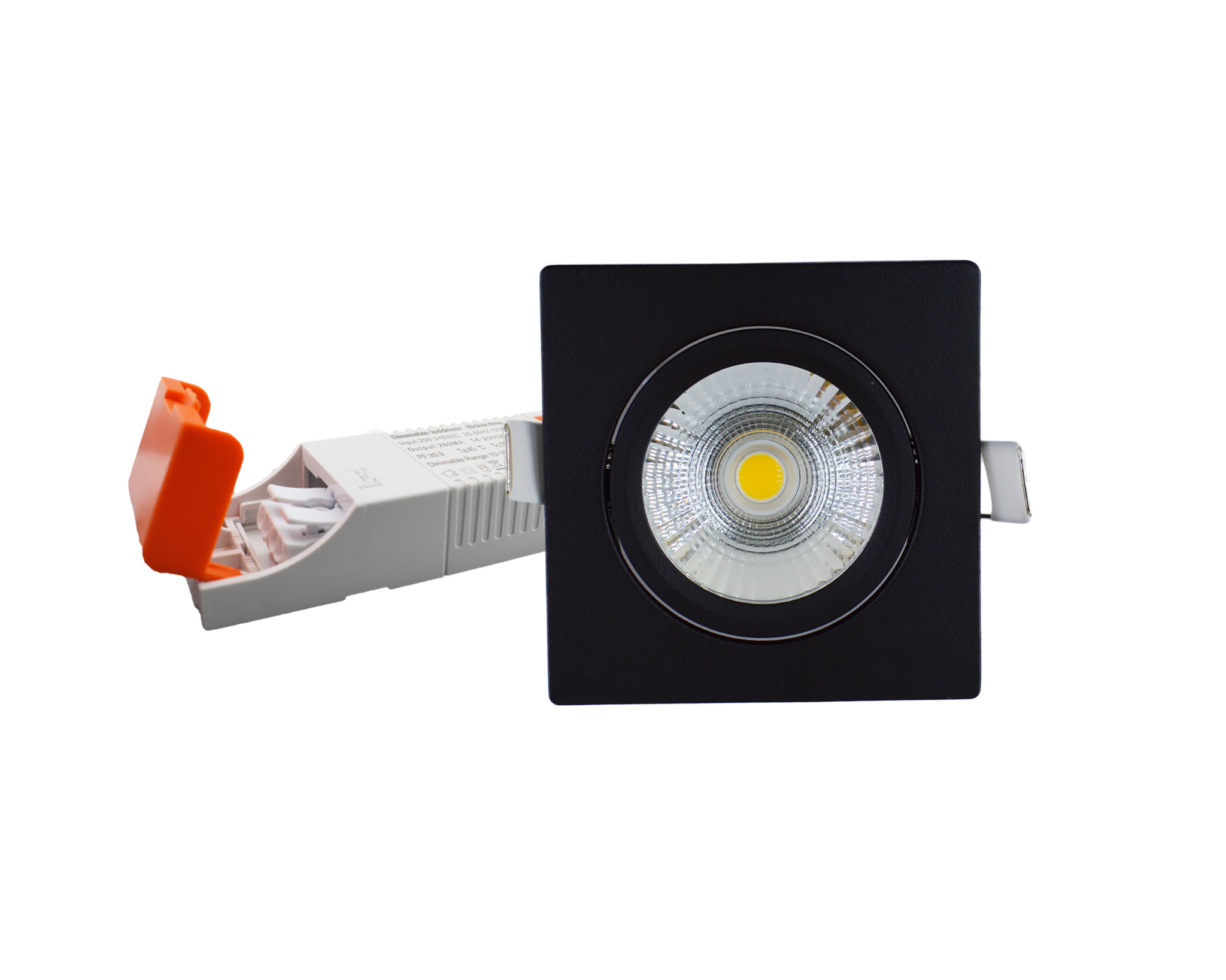 De STAR/Flat LED Spot Vierkant wordt geleverd met externe flikkervrije voeding van 9x4x2,4cm(LxBxH). De voeding kan door middel van een mannetje/vrouwtjes connector losgekoppeld worden van het spotje. Ideaal wanneer er in eerste instantie het elektra wordt aangelegd wordt en daarna pas wordt geschilderd/gestuct. Hierdoor blijft het spotje en bedrading mooi schoon en heb je geen last van hangende elektra.