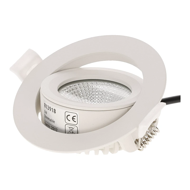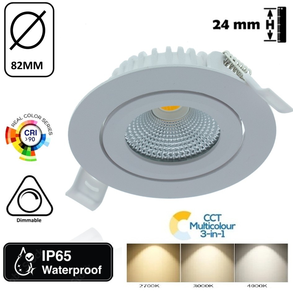 Inbouw LED Spot 6w Flat, 400 Lumen, CCT Switch (2700K/3000K/4000K), Kantelbaar, IP65, Dimbaar, CRI90, Wit Armatuur, Gatmaat 68-72mm, 2 Jaar Garantie