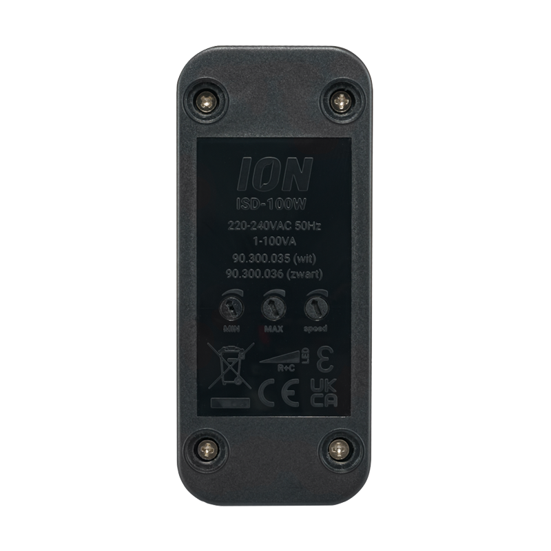 De Ion Industries snoerdimmer is speciaal ontworpen voor ledverlichting en dimt je ledlamp tot 75 Watt. Deze mooie design snoerdimmer heeft de unieke Ion Industries eigenschappen door geheel universeel te zijn en hoge kwaliteit te garanderen. Maak van je led lamp/armatuur een dimbare lamp door deze dimmer te monteren. Op de achterkant van de dimmer zijn 3 instelknoppen geplaatst, hiermee kan je de dimmer naar wens afstellen. Daarnaast kan je de led dimmer zo afstellen dat er geen flikkering meer ontstaat tijdens het dimmen van jouw verlichting. Geschikt voor lampen: ledlampen 230V* (max. 75 Watt) enkel geschikt voor dimbare ledlampen.