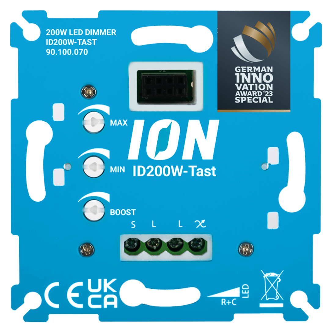 De LED Tastdimmer 0.3-200 Watt is ideaal voor het dimmen middels een Soft Touch bediening. De dimmer is toepasbaar in een hotelschakeling, door gebruik te maken van de bijpassende neventoestel-tastdimmer, en heeft een strak design. Deze dimmer is te gebruiken met verschillende kleuren tastknoppen van ION INDUSTRIES. Door de juiste kleur knop te selecteren, is de set compatible, met diverse series van de merken EMhub, Gira, Jung, Busch Jaeger, Kopp, Berker en Schneider Merten (zie bijlage voor de juiste compatible knop).
