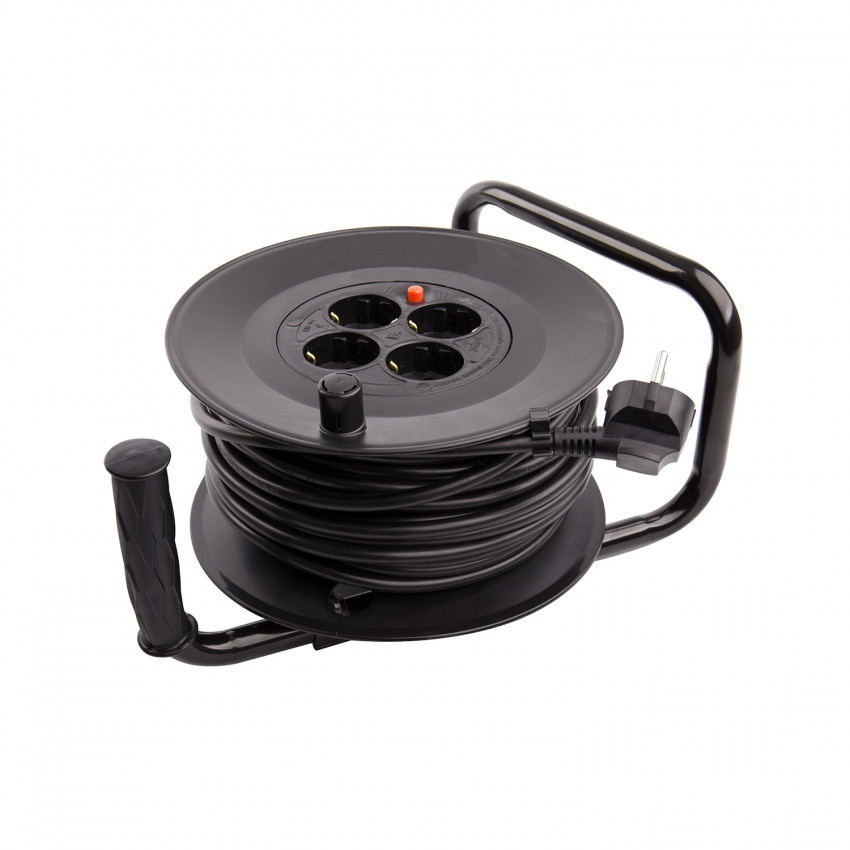 Deze kabelhaspel 50 meter is voorzien van type H05VV-F kabel met een doorsnede van 3x1,5 mm2 met een lengte van 50-meter en 4x Schuko stopcontacten van ieder 16A. Een product met zeer goede prestaties waarmee het mogelijk is om verschillende elektronische apparaten op het net aan te sluiten via de stekkers, zoals elektrische apparaten, elektrisch gereedschap, etc., waardoor ze op afstand kunnen worden gebruikt.
