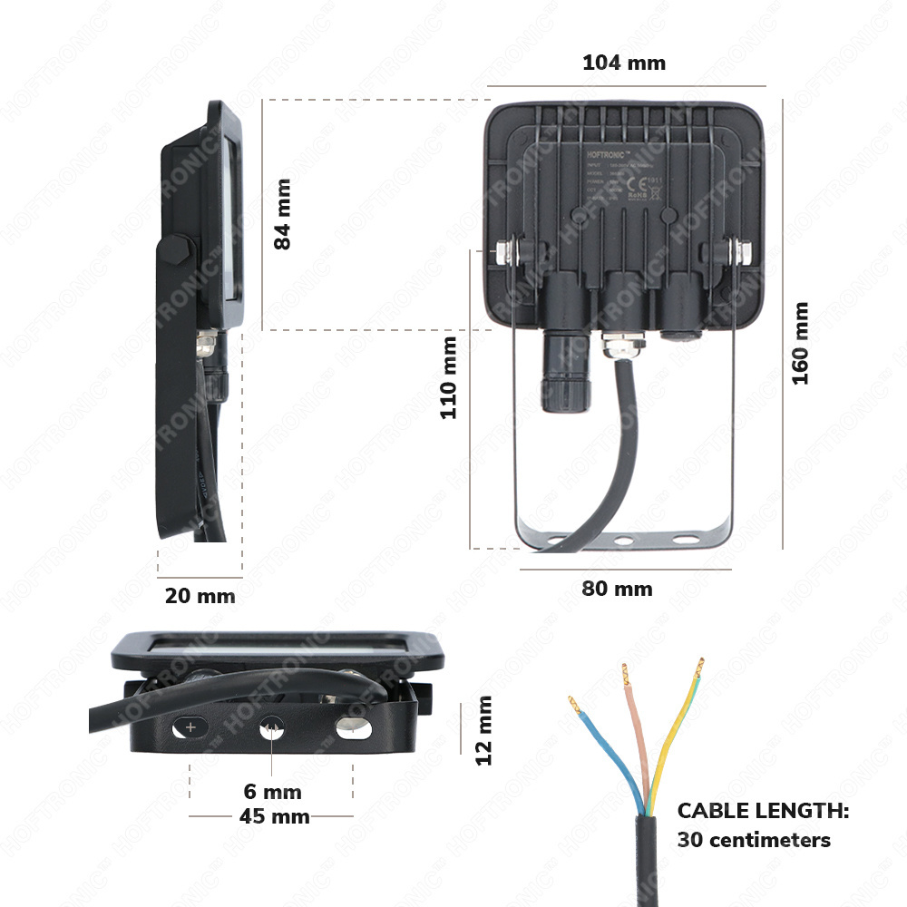 De LED Floodlight 10w wordt geleverd met een 3 aderige kabel van +- 30cm. Wilt u de LED Floodlight 10w met stekker ontvangen? Kijk hiervoor naar de mogelijkheden boven het toevoegen aan uw winkelwangen button onder "kies uw aansluitmateriaal".