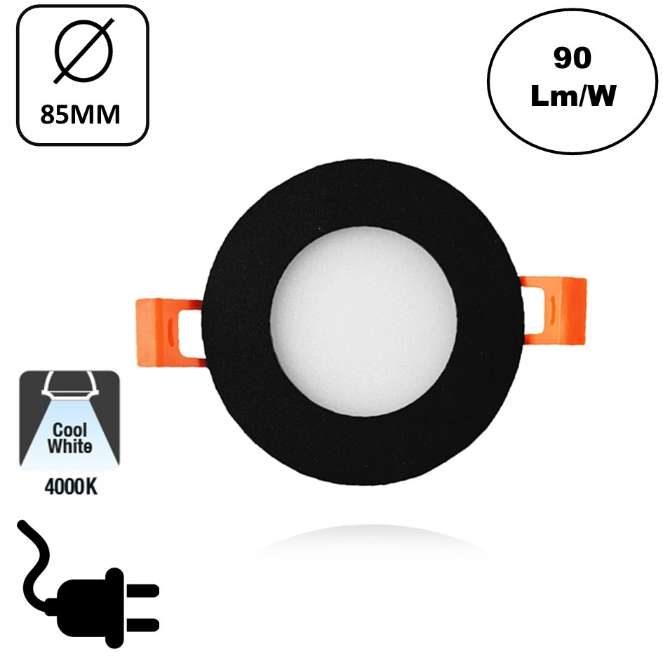 LED Downlighter Slim-U 3w, 270 Lumen, Zwart, Aluminium Body, Stekkerklaar, Gatmaat Φ75mm, 2 Jaar Garantie