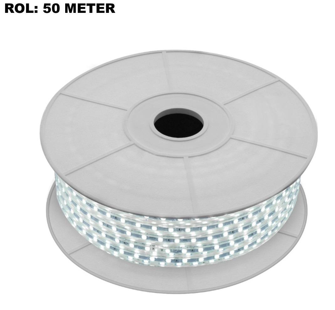 LED Lichtslang 6000K Koel Wit, Rol: 50 Meter, 5w/m, 60 leds/m, 500lm/m, IP65, 230V, 2 Jaar Garantie