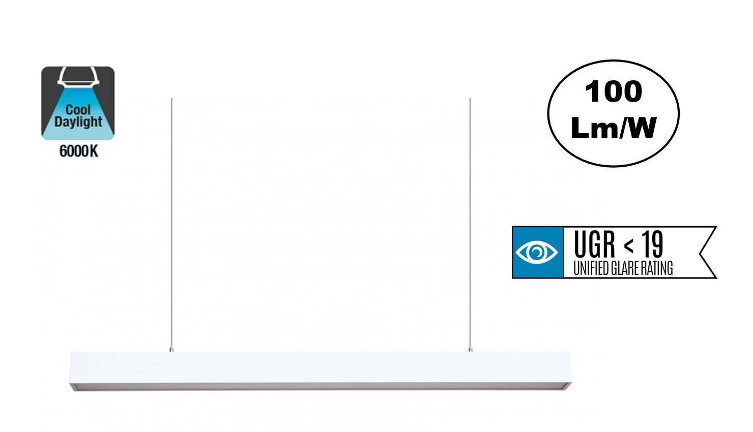 De Led Linearlamp 120cm is uitgerust met een speciale matte diffuser die een UGR<19 verblindingsfactor (geen verblinding) garandeert. In sommige situaties is het nodig om een voldoende verlichte omgeving te hebben zodat de taken uitgevoerd kan worden. Echter wordt er soms verblinding veroorzaakt door verlichting, wat een negatieve invloed kan hebben. Een laag UGR-niveau helpt werknemers zich comfortabeler te voelen, wat indirect bijdraagt aan het productieniveau. Lage verblindingsniveaus worden aanbevolen in gebieden waar veel uren onder kunstlicht worden doorgebracht, wat zeer belangrijk is in kantoren, opleidingscentra, werkruimtes etc.