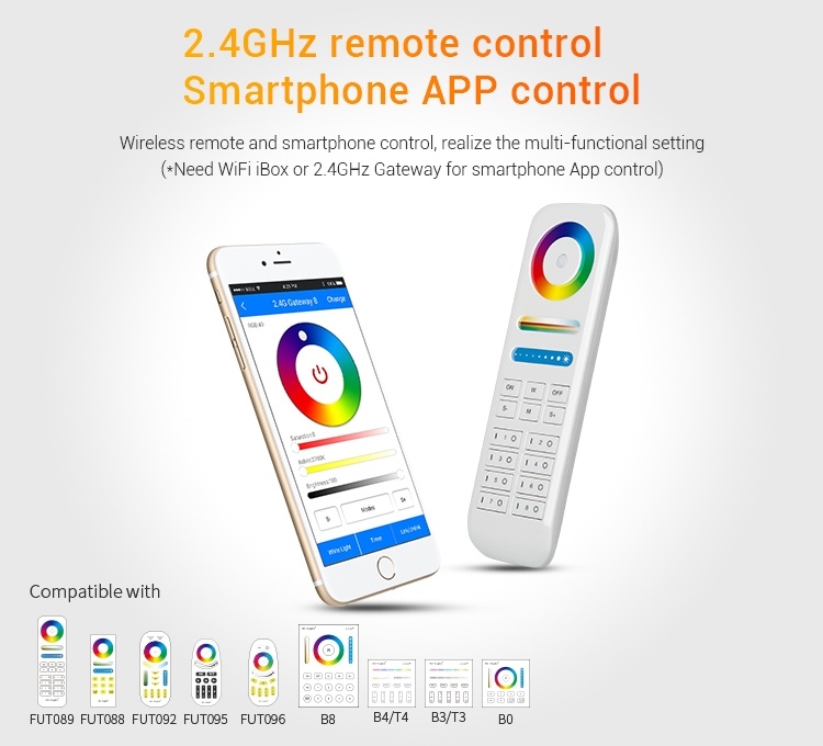 Het RGB+CCT Led Paneel 30x30cm wordt geleverd exclusief bijhorende afstandsbediening. Deze RGB+CCT afstandsbediening dient u apart bij te bestellen.