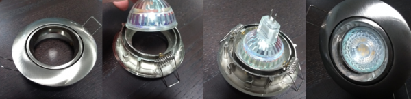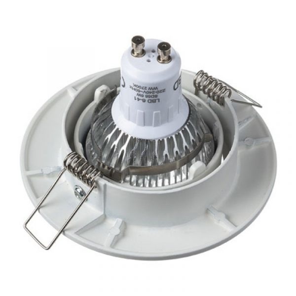 De ledspot armatuur is gemaakt van hoogwaardige kwaliteit aluminium met staalkleurige coating. De sterke bevestigingsveren zorgen voor een goede klemvaste bevestiging aan een systeemplafond plaat of een verlaagd plafond. De lampenswivel is draaibaar tot ongeveer 35º.
