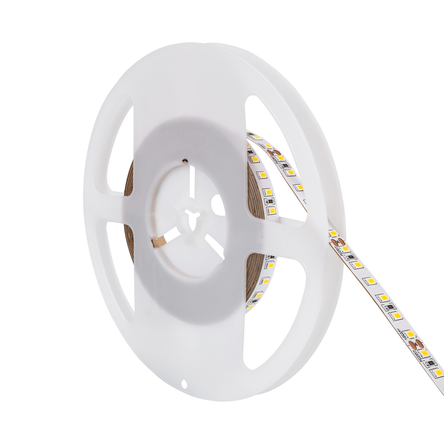 Deze led strip 2835 smd in 6000K Daglicht wit werkt op een 24v constante spanning. Wij hebben in ons assortiment diverse wattage 24v constante led strip drivers vanaf 75w leverbaar.