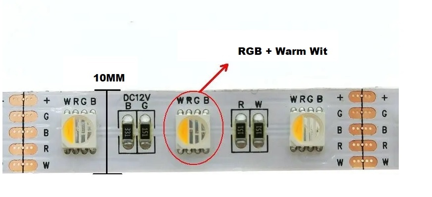 Deze RGB+ Warm Wit Led Strip met SMD 5050 heeft 60 leds per meter voorzien van RGB en warm wit functie waarbij je een 4 IN 1 LED hebt. Hierdoor licht elk LEDje op in de lichtkleur die je wilt. Met een zeer goede lichtopbrengst van Warm wit: 346 lumen, Rood: 129 Lumen, Groen: 301 Lumen en Blauw: 59 Lumen per meter. De RGBW LED Strip is daarom zeer geschikt als sfeermaker in elke ruimte. Deze led strip heeft een IP20 normering wat betekent dat deze voor binnenshuis gebruik kan worden.